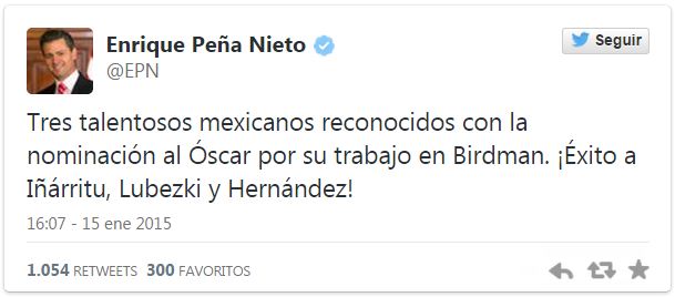 Captura Publicado 16/01/2015 en 609 × 268 en Peña Nieto felicita a los cuatro mexicanos nominados al Oscar ← Anterior Siguiente → Comparte esto:TweetMe gusta Cargando...