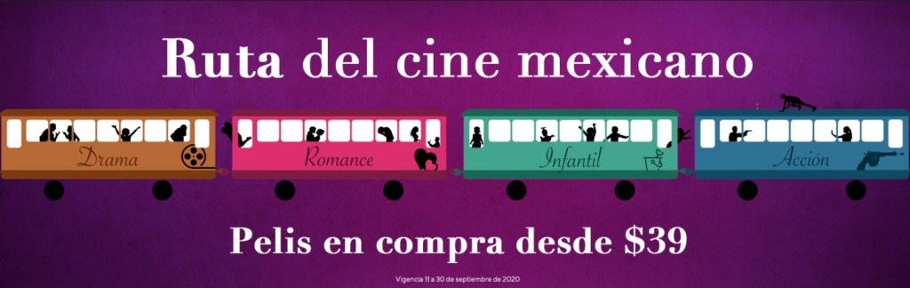 Con más de cien títulos mexicanos disponibles, algunos de ellos a la compra desde $39 pesos, dentro del canal Ruta del Cine Mexicano, recorrerás las recientes décadas a través de las películas más relevantes de los géneros de comedia, terror, drama, romance, acción, infantiles y documentales.