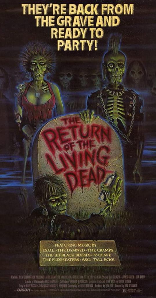 UN DÍA COMO HOY pero de 1986 se estrena en México una de las películas más divertidas de terror y con una banda sonora extraordinaria que hayan llegado al país: EL REGRESO DE LOS MUERTOS VIVIENTES (1985) de Dan O’Bannon.