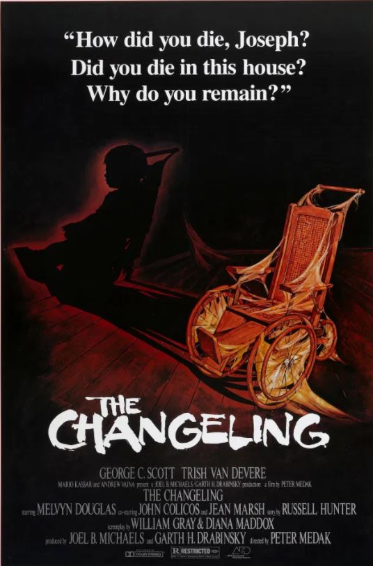 THE CHANGELING (1980) Peter Medak. Película canadiense que llegó a México con el nombre de EL INTERMEDIARIO DEL DIABLO trata de casas embrujadas y fantasmas de niños atrapados en ellas.