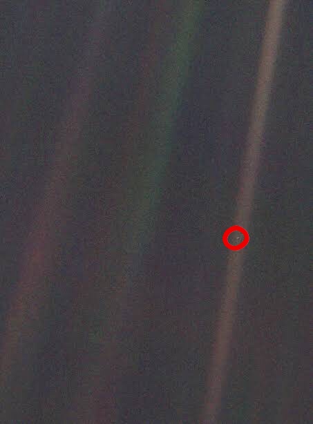 “Mira ese punto. Eso es aquí. Eso es nuestro hogar. Eso somos nosotros. En el, todos los que amas, todos los que conoces, todos de los que alguna vez escuchaste, cada ser humano que ha existido, vivió su vida. La suma de todas nuestras alegrías y sufrimientos, miles de religiones seguras de sí mismas, ideologías y doctrinas económicas, cada cazador y recolector, cada héroe y cobarde, cada creador y destructor de civilizaciones, cada rey y campesino, cada joven pareja enamorada, cada madre y padre, niño esperanzado, inventor y explorador, cada maestro de la moral, cada político corrupto, cada “superestrella”, cada “líder supremo”, cada santo y pecador en la historia de nuestra especie, vivió ahí – en una mota de polvo suspendida en un rayo de sol.