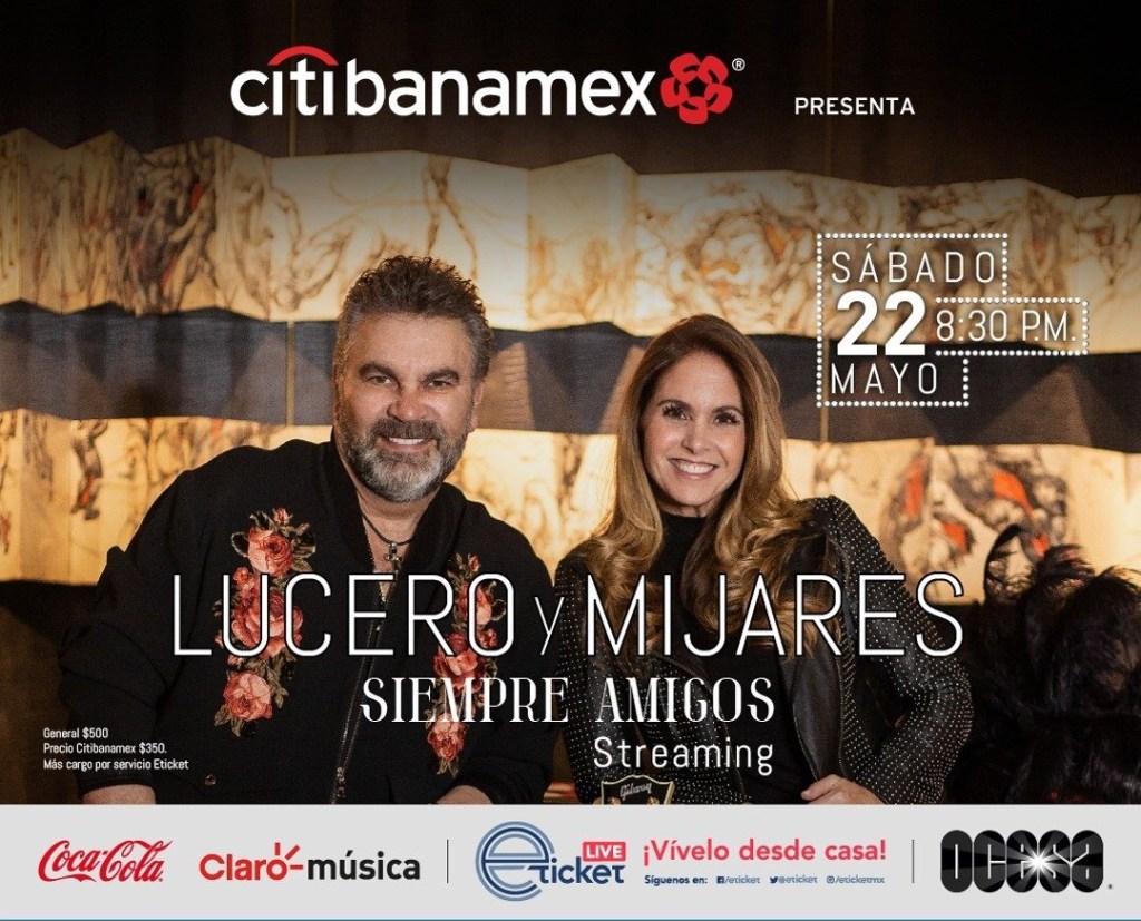 El próximo sábado, 22 de mayo, a las 20:30 horas, a través de la plataforma eTicket Live, Lucero y Mijares presentan su show “Amigos por siempre”.
