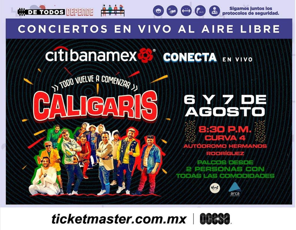 Los Caligaris se encuentran listos para regresar a la Ciudad de México y poner a bailar a sus seguidores con un par de conciertos, 6 y 7 de agosto, a las 20:30 horas, en la Curva 4 del Autódromo Hermanos Rodríguez, donde se encuentra ubicado elel escenario del Citibanamex Conecta En Vivo.
