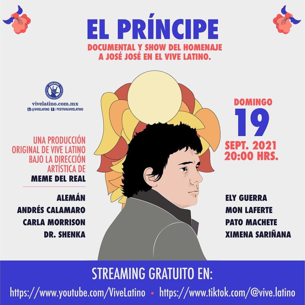 Hace unas horas se anunciaron las fechas de la próxima edición de uno de nuestros festivales favoritos; el Vive Latino, y para arrancar con las actividades rumbo a su edición del 2022, se transmitirá de manera gratuita vía streaming el homenaje realizado a uno de los íconos más importantes de la música latinoaméricana José José, El Príncipe, que se realizó en la edición del VL20.