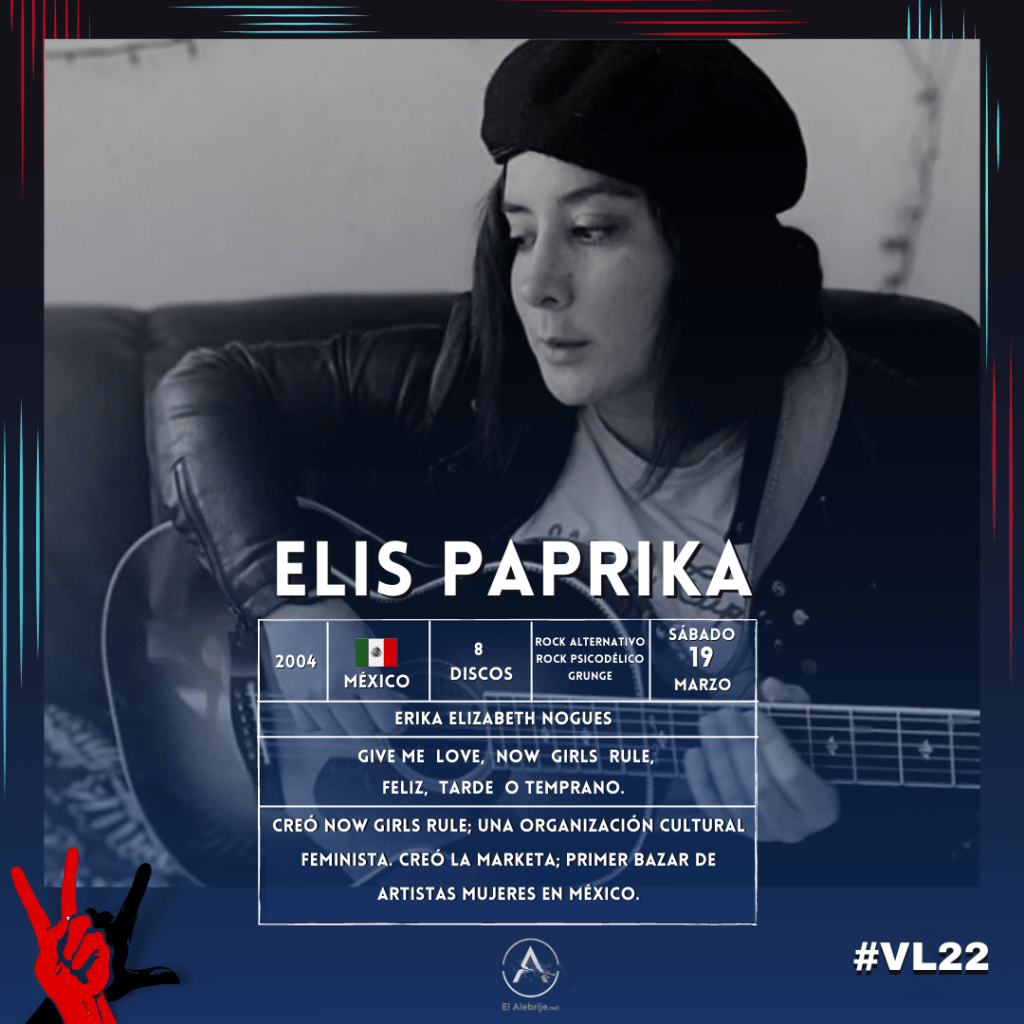 La cantante, compositora y activista mexicana Elis Paprika llega nuevamente al Festival Vive Latino el 19 de marzo de 2022.