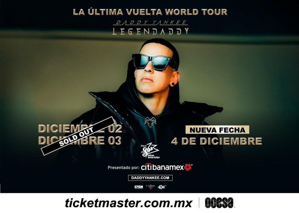 ¡Llamado de emergencia! Después de que los capitalinos se volvieran locos por los últimos conciertos del King del Reggaetón y agotaran las entradas para sus dos primeras presentaciones en cuestión de horas, Daddy Yankee confirma un tercer concierto para darle más gasolina al Foro Sol, esta vez el 4 de diciembre. No te pierdas la última oportunidad para bailar con el astro del reggaetón y adquiere tus boletos en la Preventa Citibanamex este 9 de mayo o, un día después en la taquilla del inmueble y a través de Ticketmaster.