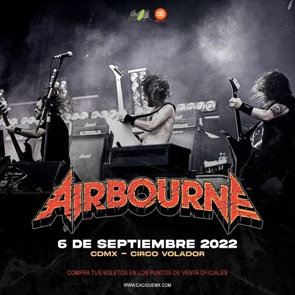 Las presentaciones de Airbourne en nuestro país comprenden los días 3 de septiembre en Guadalajara (C3 Stage), 4 en Monterrey (Café Iguana) y 6 en Ciudad de México (Circo Volador).