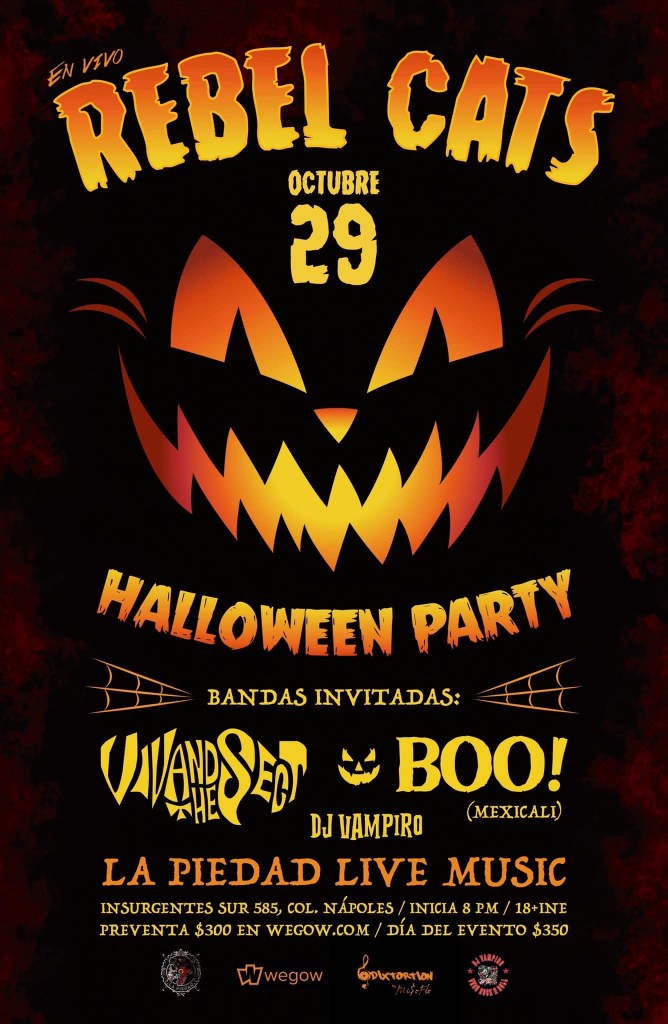 El rockabilly correrá a cargo de los Rebel Cats en una fiesta de halloween, en la que Viv and the sect, Boo! (Mexicali) y el set del luchador Dj Vampiro Canadiense, serán los invitados para mantener al público bailando.