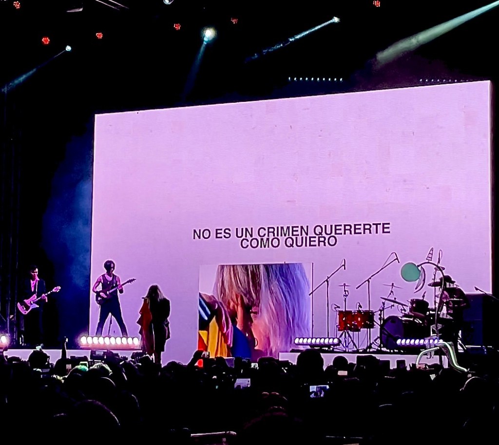 “Me voy, me voy, me voy, es una canción que dudé mucho si ponerla en el disco y de sí ponerla en el tour porque es una canción que hasta la fecha me hace un nudo en la garganta…