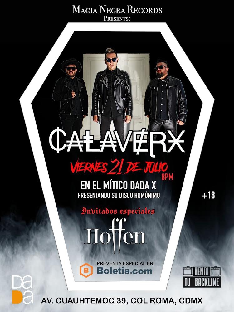 La banda mexicana de rock CALAVERX regresa a la Ciudad de México para presentar oficialmente su disco homónimo en el marco de su gira SYNTHETIZER TOUR. Después de más de seis meses de ausencia en la capital, este proyecto originario del Estado de México, y orgullo de la escena gótica, se presentará el próximo 21 de julio en el mítico DADA X, ubicado en la Av. Cuauhtémoc 39, La Romita.