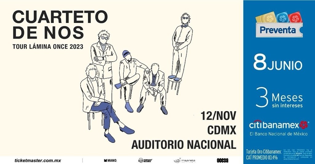El Cuarteto de Nos, se prepara para deslumbrar a sus seguidores en una noche inolvidable en el Auditorio Nacional. La fecha marcada en el calendario es el domingo 12 de noviembre de 2023, y los fanáticos de la banda no querrán perderse esta experiencia única.